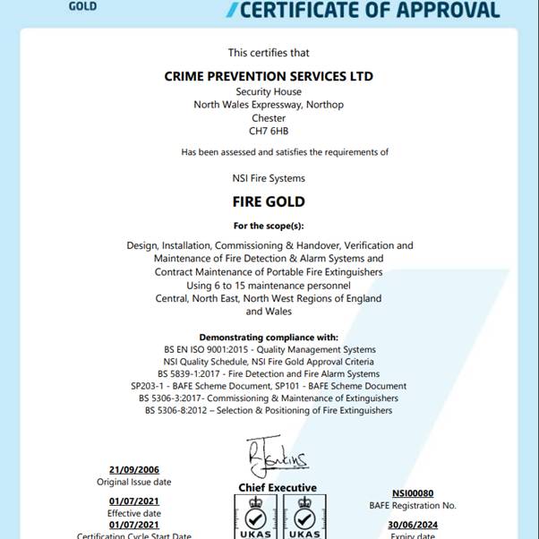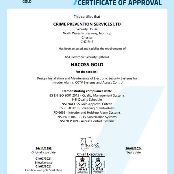 Crime Prevention Services has recently undertaken the annual NSI Gold audits. This was Split over three days which included technical site visits and internal quality management systems.